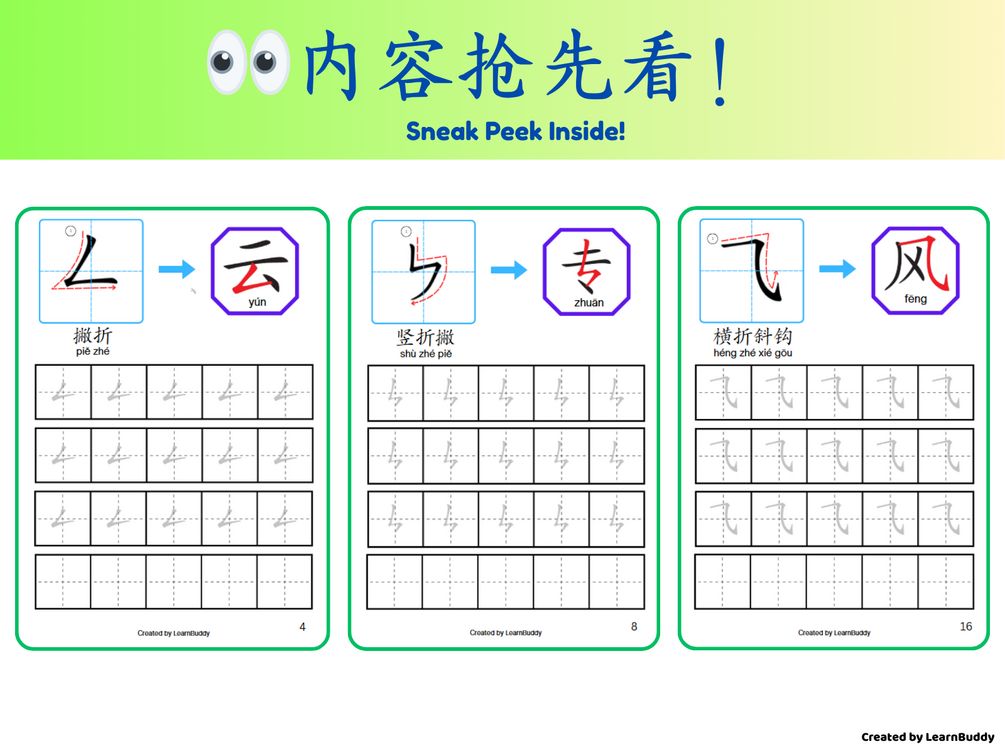 Help your child build a strong Chinese handwriting foundation with this fun and educational Basic Stroke Practice Book!