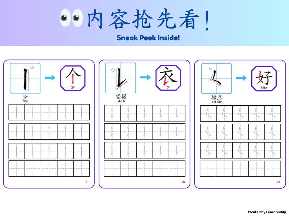 Help your child build a strong Chinese handwriting foundation with this fun and educational Basic Stroke Practice Book!