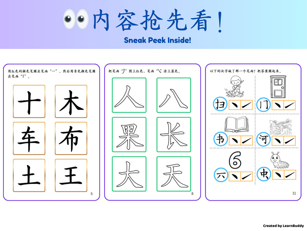 Specially designed for preschoolers and early learners, this printable PDF is filled with engaging activities that make learning Chinese strokes easy and enjoyable — through tracing, coloring, and simple matching games.