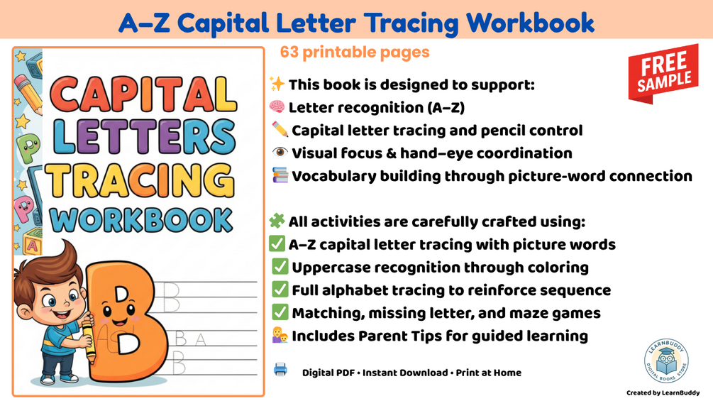 🔗 Check it out here: https://learnbuddy.gumroad.com/l/capital-letter-tracing-workbooks