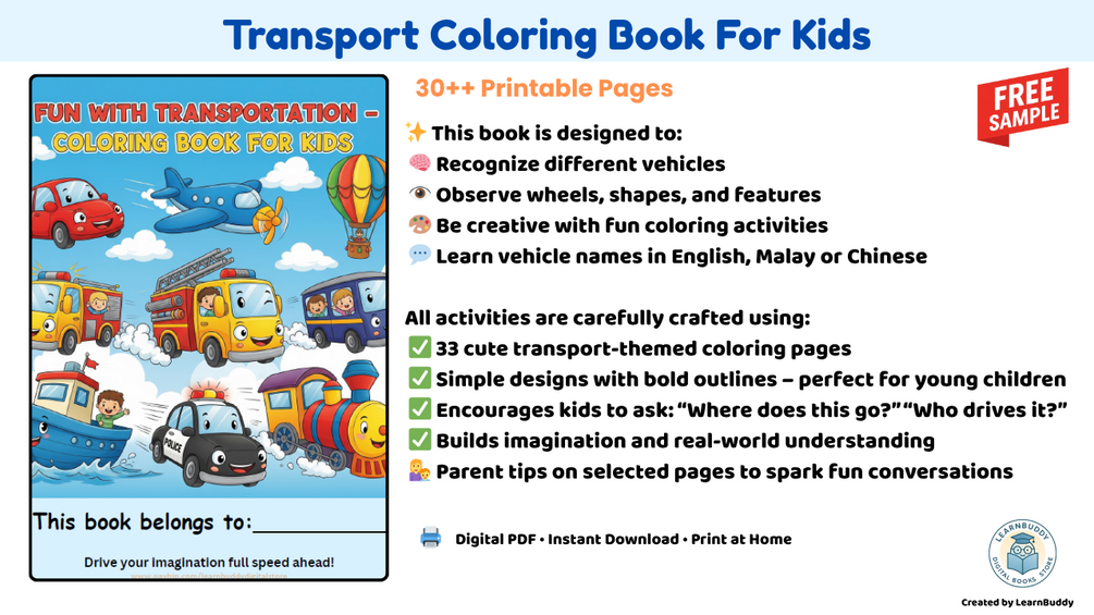 👉 Love it? The full version available at here: https://learnbuddy.gumroad.com/l/coloring-transport