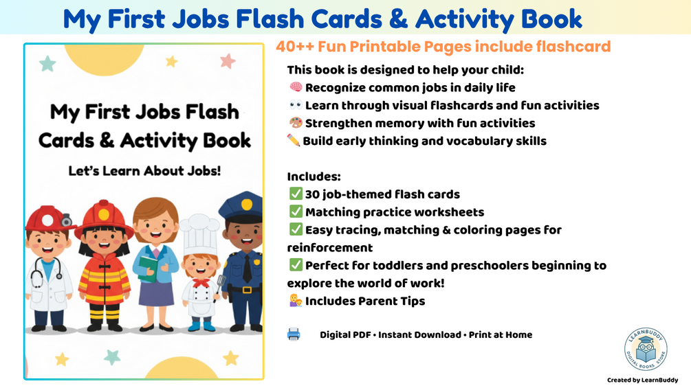 Perfect for toddlers and preschoolers, this PDF bundle includes colorful job-themed flashcards and hands-on activities like tracing, matching, and cutting to help deepen understanding.