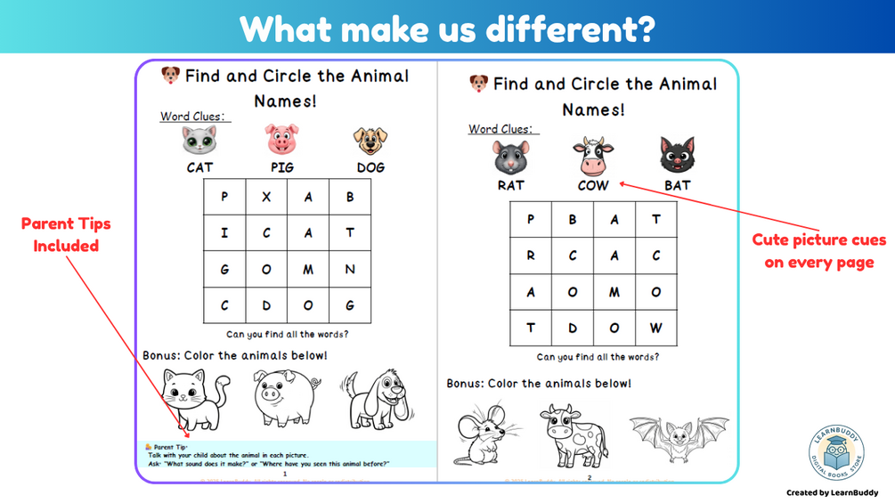- Builds Early Vocabulary β Introduces basic 3β4 letter words in a fun, memorable way.