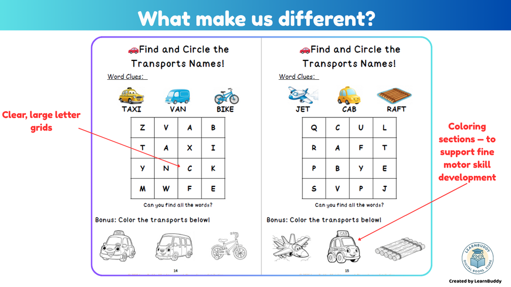 - Boosts Letter Recognition β Helps little ones identify letters while searching and circling.